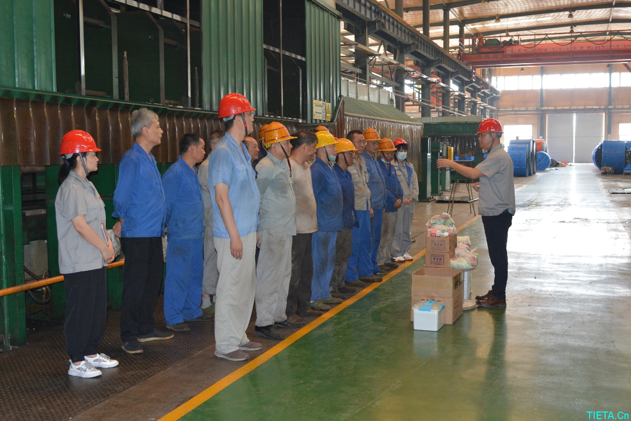 6月2日,铁塔橡胶纪委书记、工会主席毕戈一行深入“汽改电”项目施工现场,看望慰问在高温天气下奋战在技改一线的干部员工,并送上了“夏日清凉礼包”。